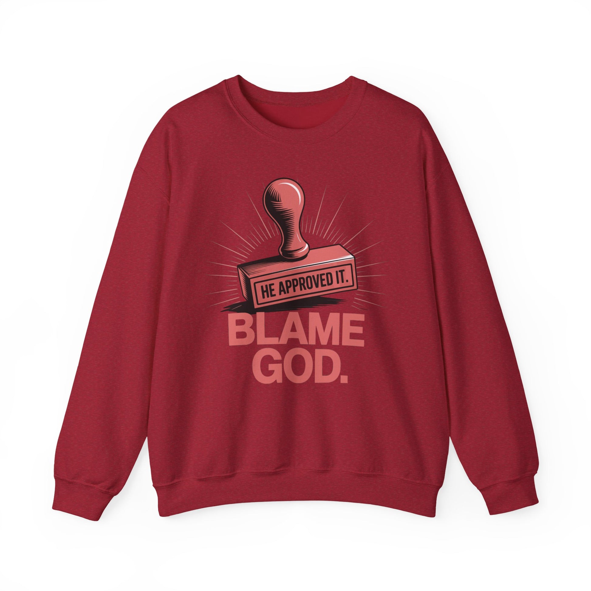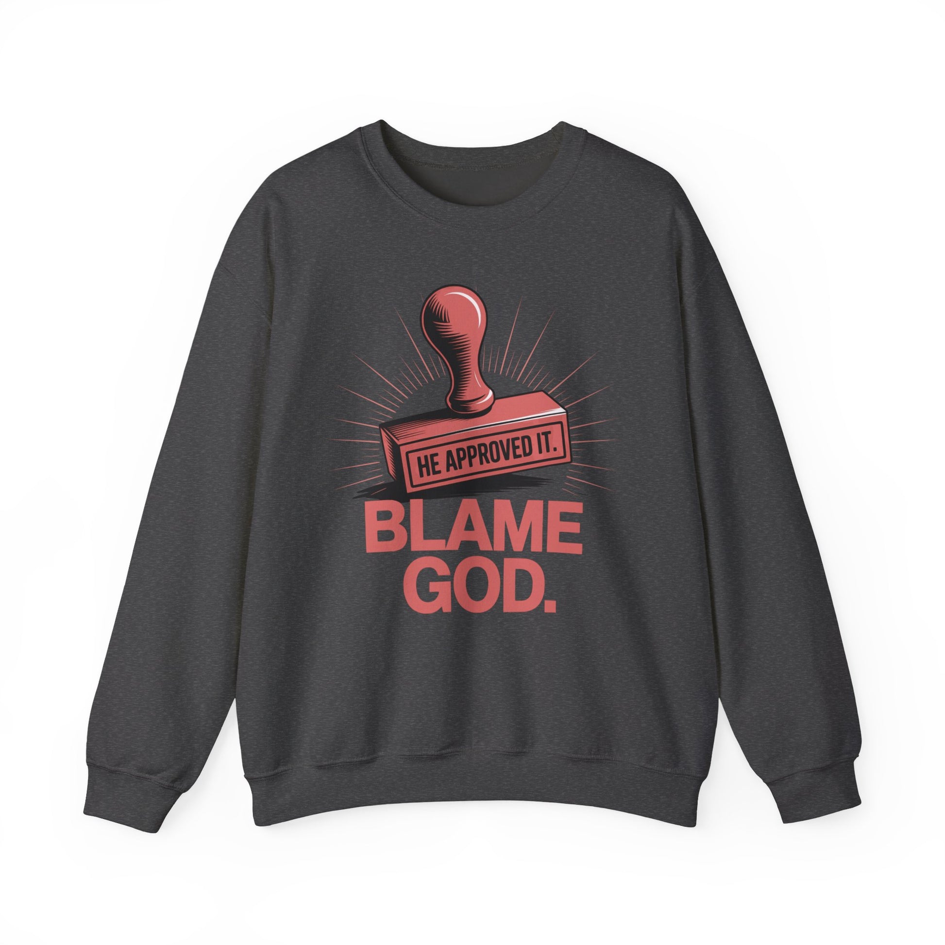 Blame God (Stamp) | Unisex Heavy Blend™ Crewneck Sweatshirt