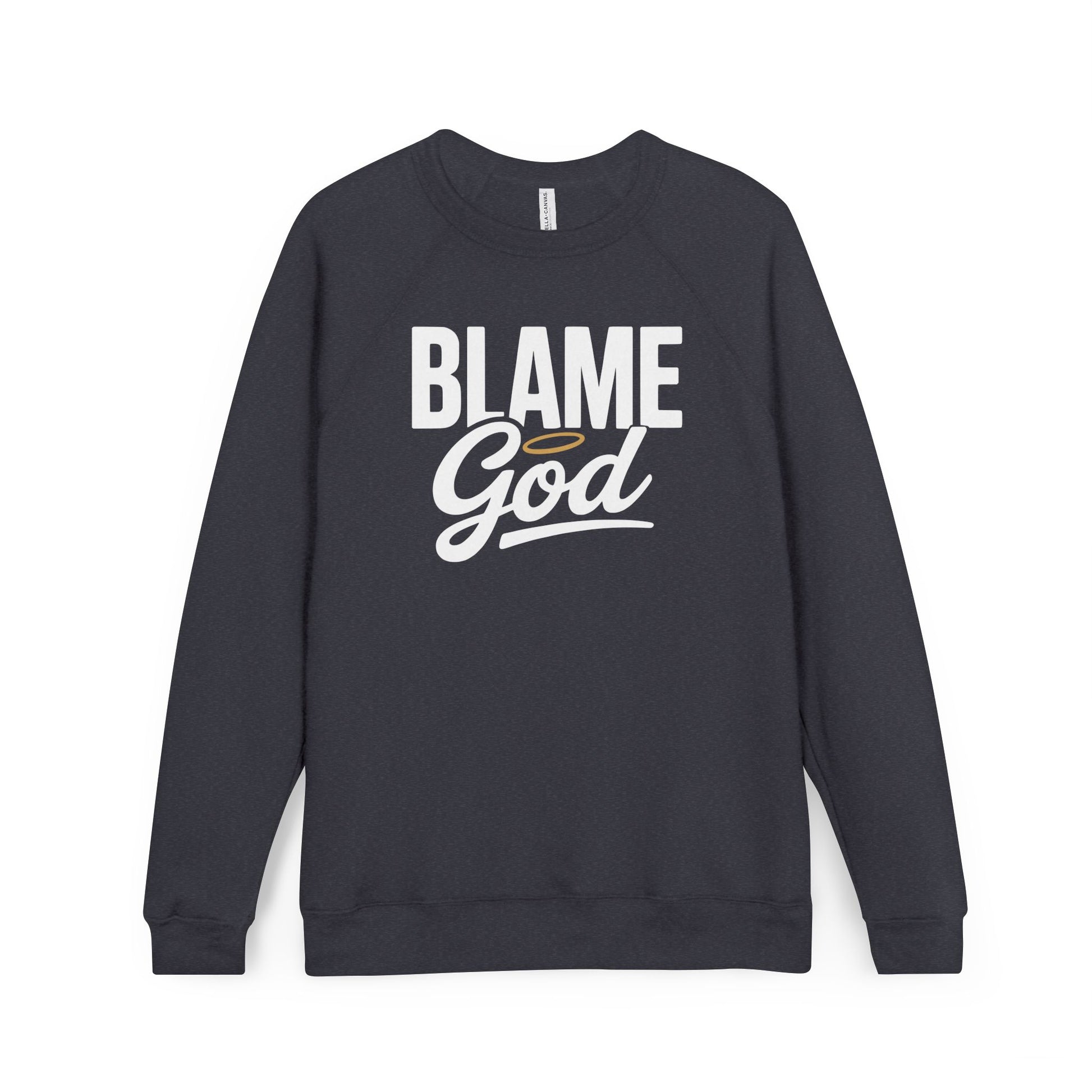 Blame God (Halo) | Unisex Sponge Fleece Raglan Sweatshirt